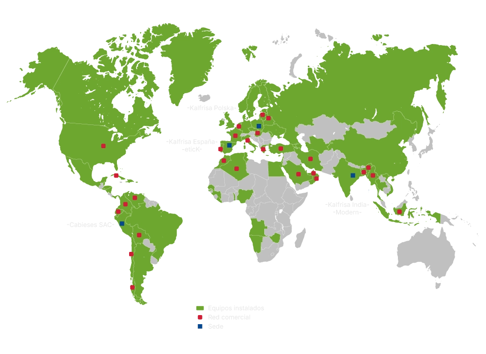 Esta estructura internacional, compuesta por filiales propias, empresas participadas, asociados estratégicos y una red internacional de agentes comerciales y distribuidores, refuerza nuestra capacidad de ofrecer soluciones adaptadas, eficientes y sostenibles en todo el mundo.