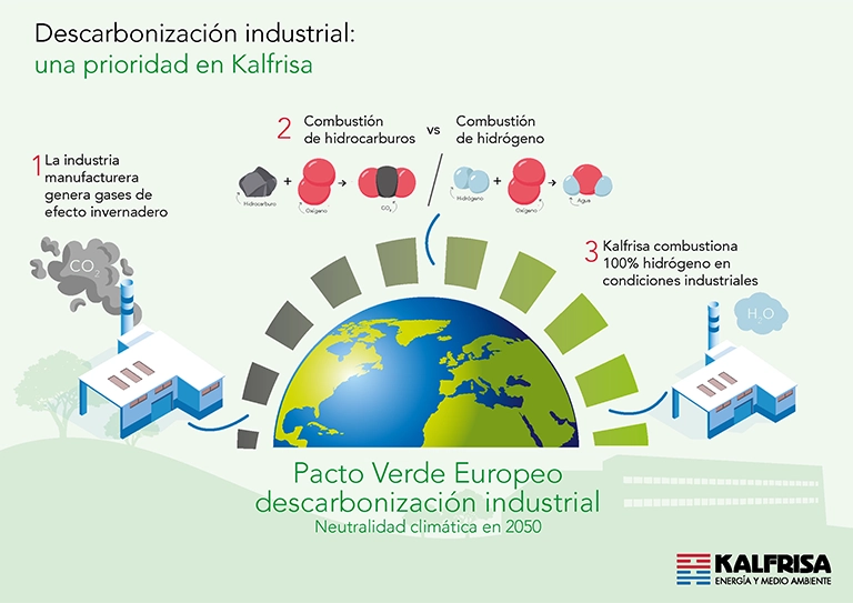 Kalfrisa apuesta por la descarbonización de aquellos procesos que requieren de un combustible fósil para alcanzar las condiciones de trabajo y ha alcanzado la combustión de 100% de hidrógeno a escalas industriales.